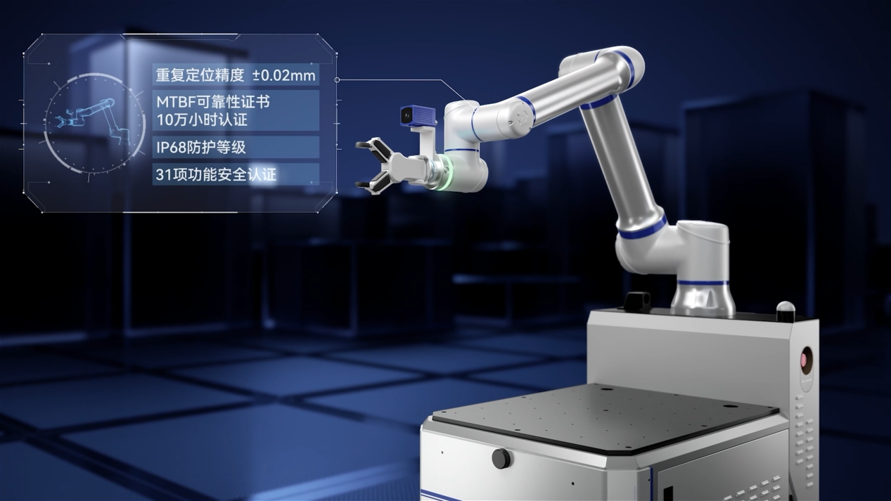 高靠得住施行单位(手):协做机械人产物笼盖3~30KG宽负载范畴,具备业内首个MTBF 10万小时测试认证,同时满脚31项功能平安要求,全面保障人机协做场景的平安取不变。