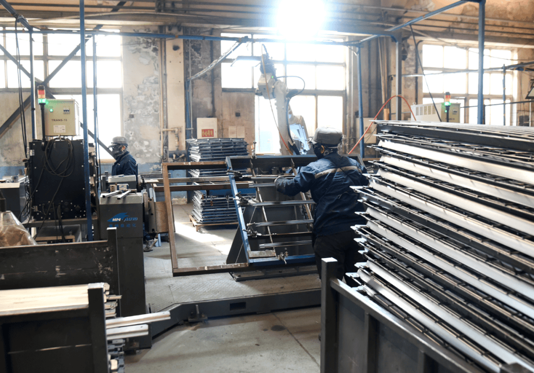 正在省级专精特新“小巨人”企业——日牵物流配备集团无限公司,机械轰鸣,出产线高速运转,员工丰满,呈现朝气蓬勃、忙碌有序的火热气象。企业次要出产仓储笼、拆货运输用托盘箱、仓储架、金属丝网托盘、物流台车等产物,此中85%产物销往国外。
