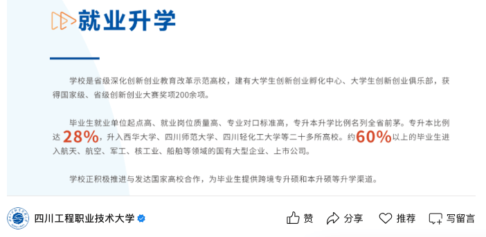 但其实现在我国已有相当多的职业本科大学,此中良多都具有原部下高校布景,因而实力取就业都不错。学校2025年报考指南显示,60%以上结业生都能进入航天、航空、核工业、船舶等范畴的国有大型企业、上市公司。