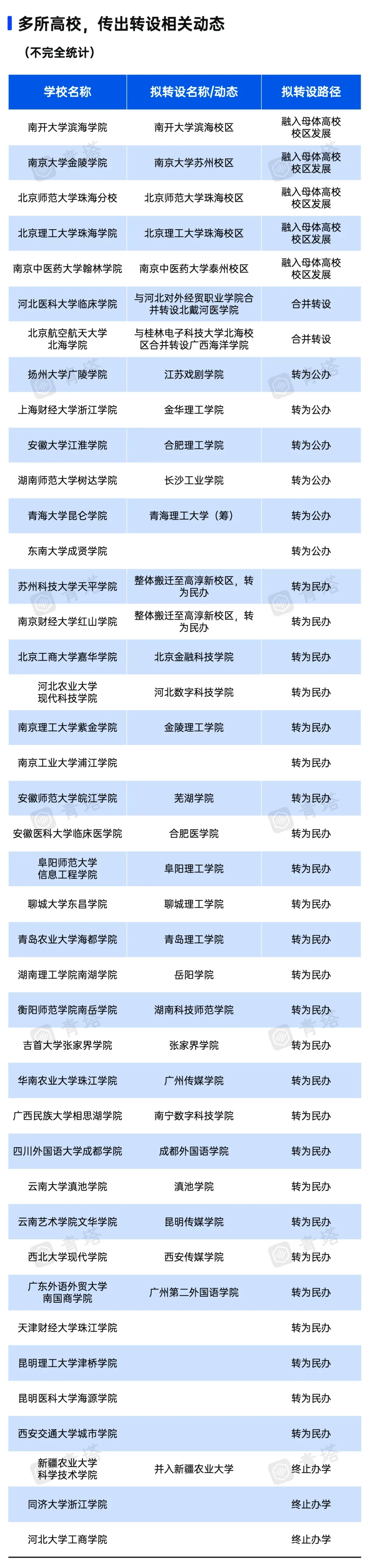 而除了二本升一本之外,还有一些学院正正在加快转设,接踵归并、转设、终止办学,以至部门学院间接融入母体高校校区成长,间接“升级”成为“985”!