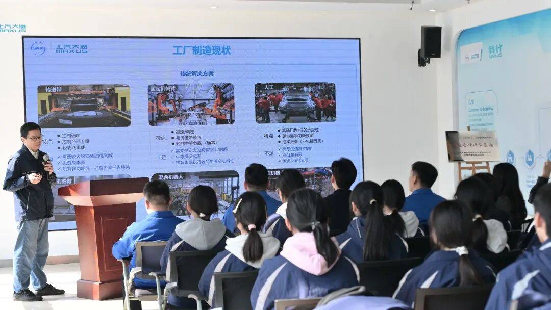 上汽大通工程师王存款以《沉塑智能制制将来》为题,向同窗们引见了人形机械人正在汽车制制范畴的使用现状和成长趋向。从动化出产等角度,向同窗们引见了上汽大通正在产物开辟、工艺设想和质量管控等方面的劣势。同窗们听得专注、互动积极,认识AI正在现代汽车制制业的工程使用,认识科学取工程实践的魅力。