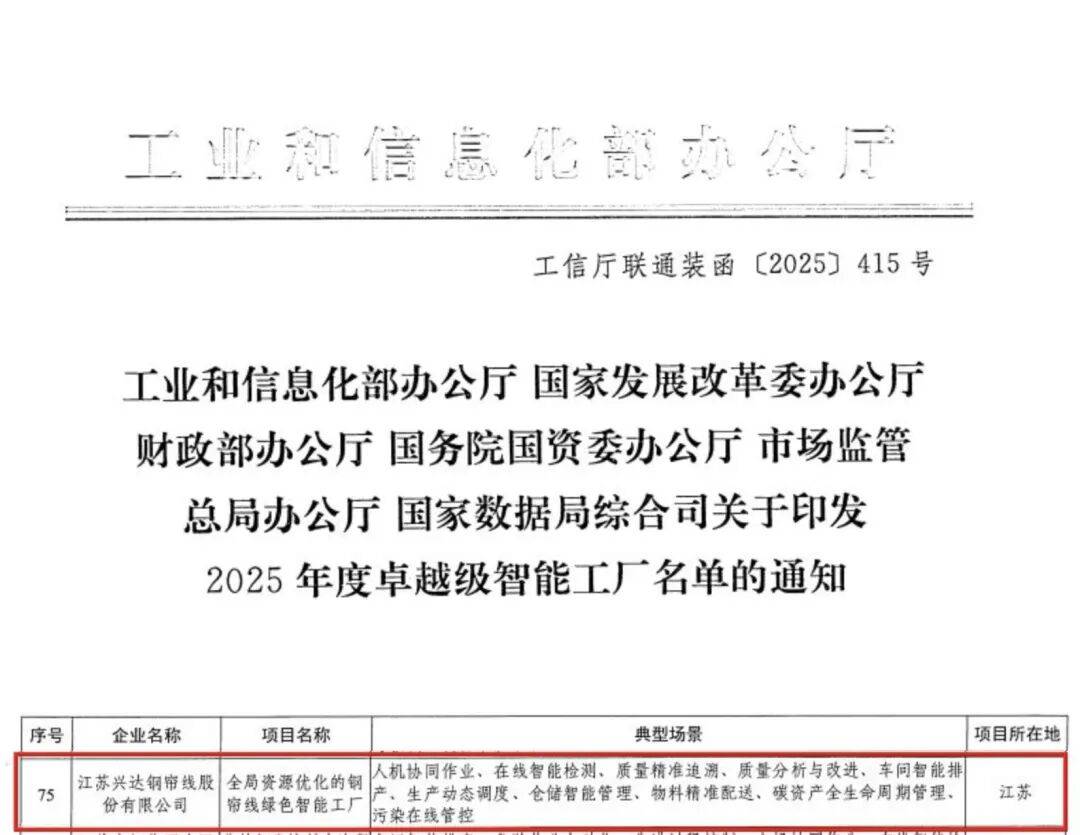 沉磅加冕!兴达集团荣登2025国度杰出级智能工场
